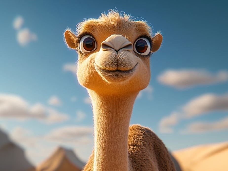 My name is Kalila, and I’m a young dromedary camel with soft, sandy-colored fur, long eyelashes to keep the desert sand away, and big, curious brown eyes always searching for adventure.