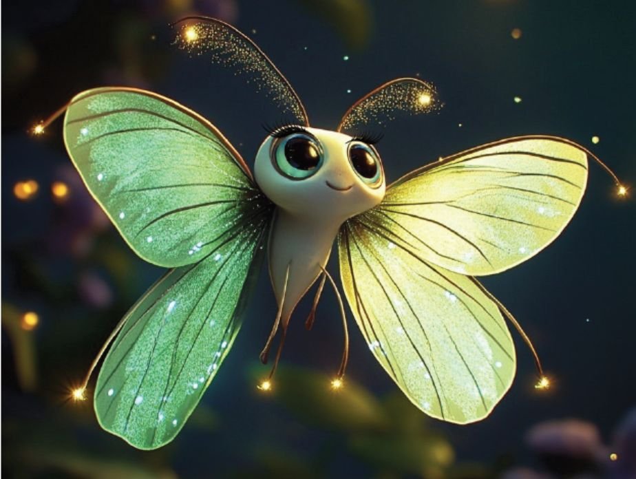 My name is Luna, and I’m a Luna Moth with glowing pale-green wings that shimmer like moonlight across the night sky. With my long, feathery antennae and sparkling eyes, I can sense starlight shifts and cosmic changes no one else sees!